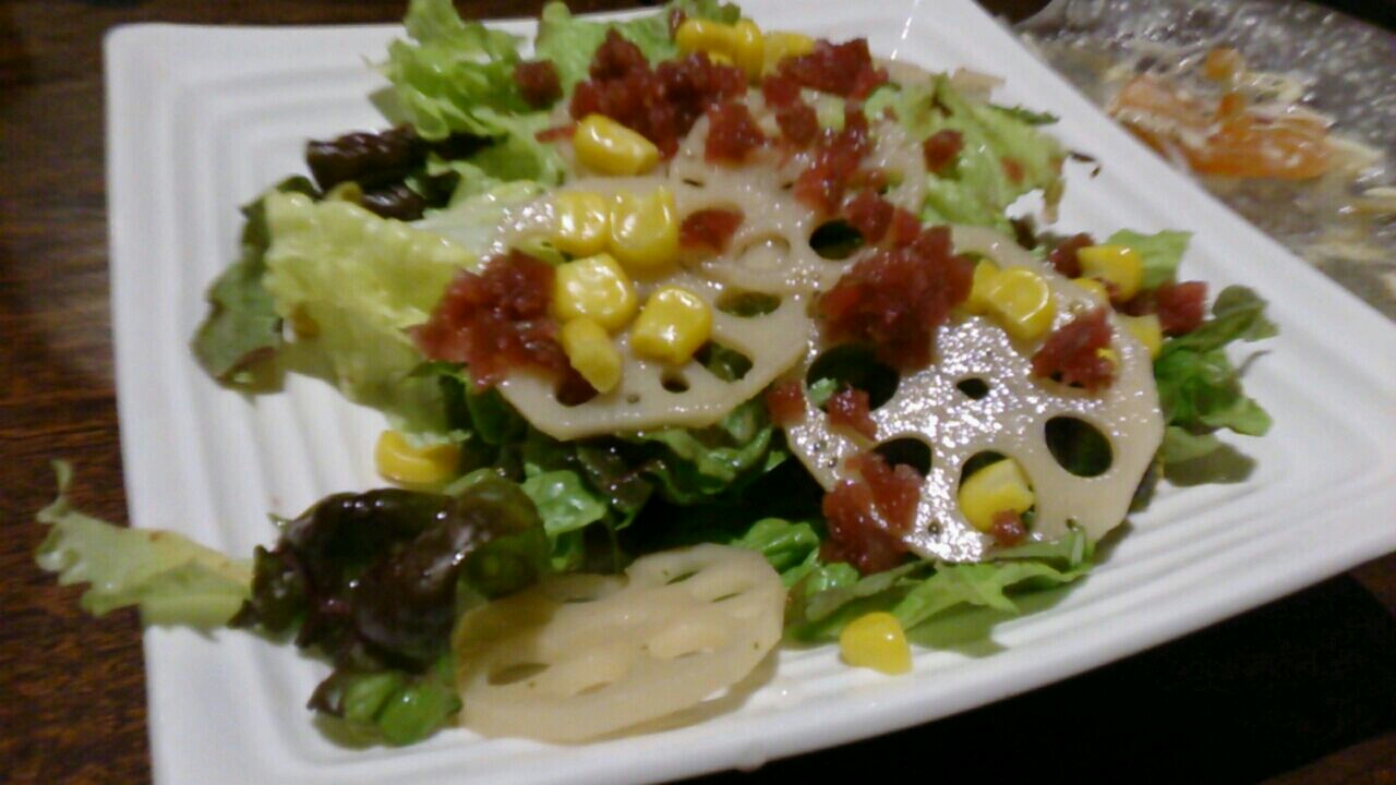 蓮根とカリカリ梅のサラダ。